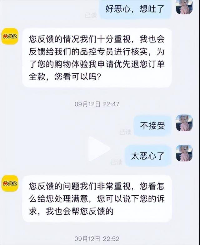 更让人不恬逸的是品牌的回应体例,无论你说得多严沉,客服的回答几乎都是一个模板:“我们的配料都是特地工场出产,”至于异物到底从哪来,出产哪个环节出了问题,他们只会说“已反馈给工场核实”,没有任何针对性注释。