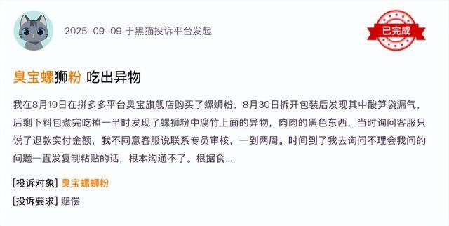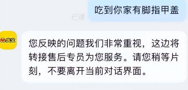 先说几个具体的例子,有消费者正在社交平台发了一段视频,说本人正在臭宝螺蛳粉里发觉了一块“指甲”,大小还不小,思疑是脚趾甲。他第一时间联系了品牌客服,对方许诺一周内给回答,成果最初只情愿退100块钱,这位消费者当然不接管,可没过几天,他的赞扬帖就莫名消逝了,记者再想联系他也联系不上。