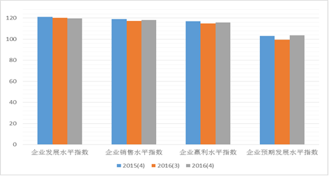 上海市企业家投资决心指数反映了企业家对于本企业出产运营现状的对劲程度和对将来的预期。环比上升1。36点,同比持平。本季度企业家投资决心指数的分类指数全体波动幅度较小,此中表示当前企业成长情况的企业成长程度决心指数为119。71点,取上季度持平,同比下降1。46点;反映企业发卖程度的企业发卖程度决心指数是为118。11点,环比取同比均根基持平;企业盈利程度决心指数为115。73点,环比持平,同比下降1。13点。企业预期成长程度决心指数为103。76点,较前一季度上升4。22点,同比持平,具体值数值见图7。